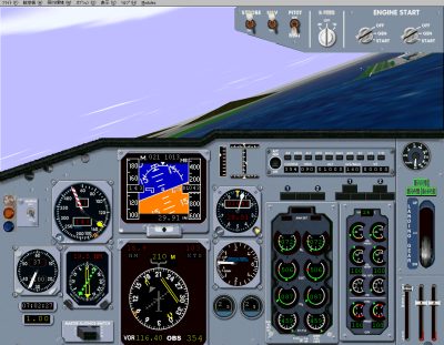 轟音とともに、滑走路を走り出した。中心線をはずさないようにラダーを微調整しよう。 「V1!」 「VR!」 「V2!」 機体がゆっくりと浮かび上がる。 「ポジティブ!」 「ギアアップ!」「ギアアップ」 |